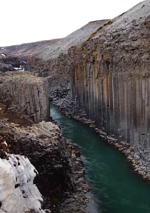 Hljóðaklettar is a collection of columnar rock formations in Jökulsárgljúfur in Vatnajökull National Park. Geological formations are world-class, with columnar rocks woven into various shapes. Just south of the cliffs are Karl and Kerling, two lava flows at the bottom of the gorge. The man is about 60 m tall, but the woman is shorter and slimmer. The name Hljóðaklettar is derived from the echo of the river, which most closely resembles a buzz.