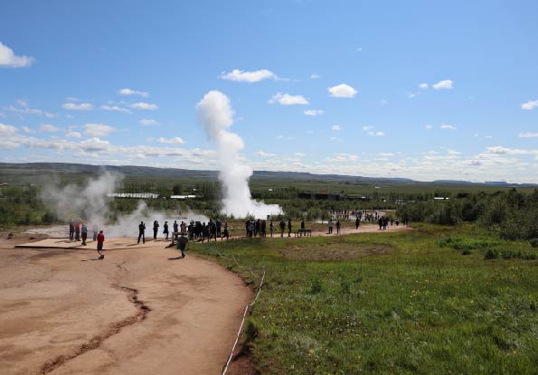 Deildartunguhver is north of Reykjadalsá, in Reykholtsdalur. Deildartunguhver is the wateriest spring in Europe. Its hot water flows 180 liters of 100° C per second. The hot spring is part of Borgarfjörður's most extensive geothermal system, the most powerful in Iceland. If you look at natural surface geothermal energy, almost half of the water flow comes from the hot spring. One of the world's most extended geothermal water pipes lies 64 km from Akranes.