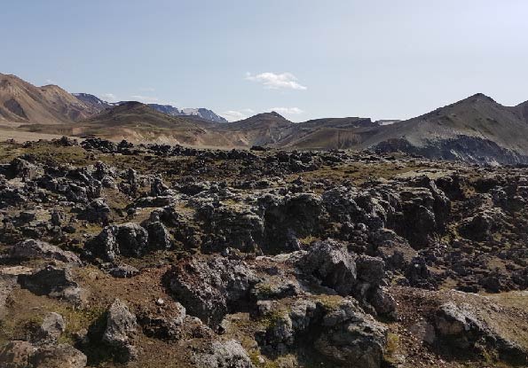 Landmannalaugar is a hot natural pool in the highlands on Fjallabaksleið, northeast of Hekla in Friðland, located behind the mountains. It is 600 m above sea level and at the foot of Laugahraun. The lava is rather rugged, with great natural beauty and color.