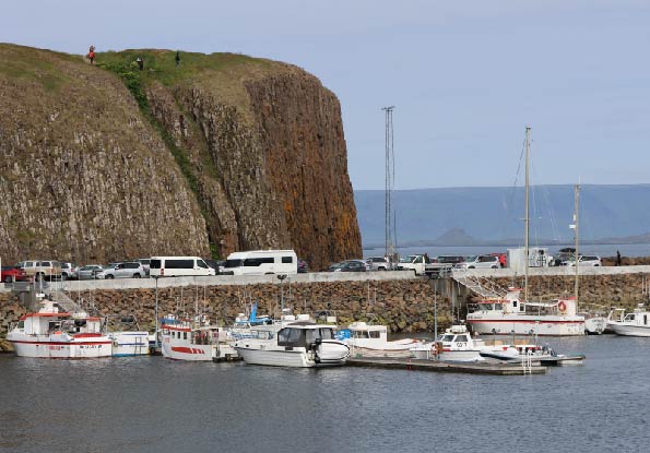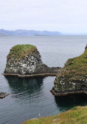 Grímsey in Skjálfandi off the north coast. The area of Grímsey is 5.3 square kilometers and rises to a height of 105 meters above sea level, and steep bird cliffs are the island's outskirts in three directions. The shortest distance between the country's north coast and Grímsey is 41 km. The island is all grassy and has 117 species of plants. Up to 60 species of birds nest there and spend the summer there. For example, the puffin arrives in mid-April and leaves in early August. Grímsey is the northernmost settlement in the country, and there are generous fishing grounds all around the island. In winter, daylight is very short. The Arctic Circle runs through Grímsey on the north side.